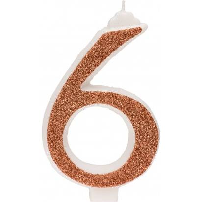 Popis produktu Sviečka na tortu 12 cm trblietavá zlatá číslo 6 - Dekora
