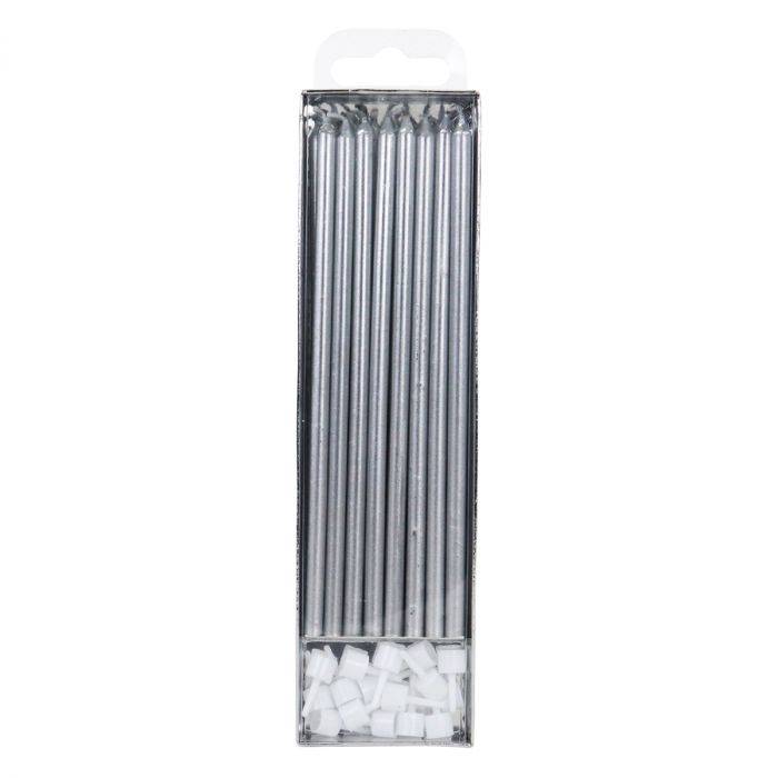 Popis produktu Sviečky dlhé strieborné so zápichom 16 ks